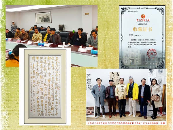 2018年11月24日,民进武昌区工委会员、非遗传承人杨贤毅的双钩书法作品刘少奇诗词《天津桥上》,被“武汉工运博物馆”收藏并颁发收藏证书。