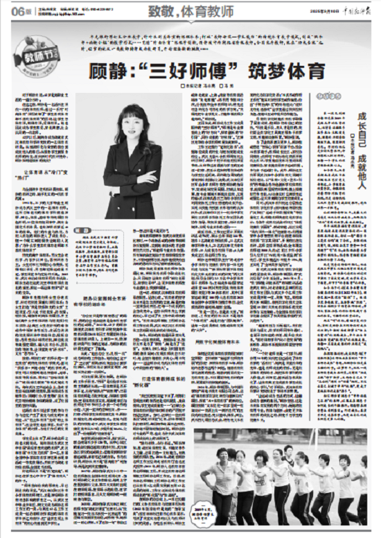 在2025年9月10日的《中国教师报》第6版中,整版刊登了民进会员、武汉市教育科学研究院体育教研员顾静的先进事迹,全面展现了她从一线教师到教研名师的成长历程与教育成果。
