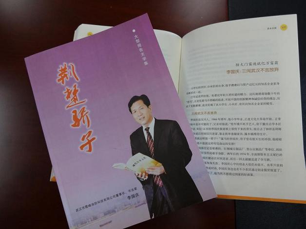近日,由长江出版社出版的大型报告文学集《荆楚骄子》刊登了介绍民进中央联络委员会委员、武汉市政协委员、硚口区政协常委、武汉市工商联常委、汉南区人大常委、武汉市霞峰消防科技有限公司董事长李国庆的报告文学:《国运昌隆山河丽 霞光无限抚万峰》,文章从源于一个梦想、忠于一种信念、归于一份责任、为了一个境界四个层面,向读者展示民进会员李国庆以他创业的耐力、做人的魅力、做事的定力和创牌的毅力,走过了艰辛而漫长,曲折而辉煌的历程。由湖北人民出版社出版《创业之路》也大篇幅刊登了介绍李国庆的文章《防火门窗造就亿万富翁——李国庆:三闯武汉不言弃》,文章以三闯武汉不言弃、智能双全才能笑傲市场、创业不忘回报社会三个方面介绍李国庆从一个小木匠,单枪匹马来汉闯出一片灿烂的天空,并成长为热心公益、参政建言的优秀政协委员的事迹。