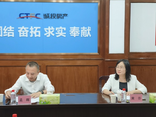 2025年9月22日,民进武汉市委会主委孟晖一行走访调研江岸民进会员王琴所在企业——武汉城投房产集团有限公司。武汉市城市建设投资开发集团有限公司党委书记、董事长余新民、副总经理明将来,民进武汉市委会专职副主委黄芬陪同调研。